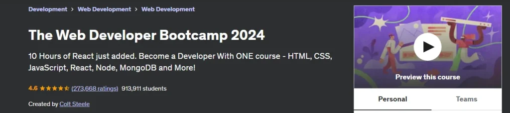 1. The Web Developer Bootcamp by Colt Steele (Udemy)