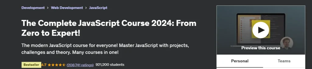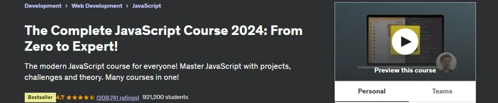 3. The Complete JavaScript Course 2023: From Zero to Expert by Jonas Schmedtmann (Udemy)