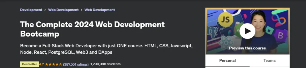 Overview: This comprehensive course is designed for beginners and covers everything from HTML and CSS to JavaScript and Node.js. It also includes hands-on projects to apply what you’ve learned. This is one course that you can go for the web developer journey.
