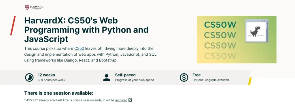 2. CS50's Web Programming with Python and JavaScript by Harvard University (edX)