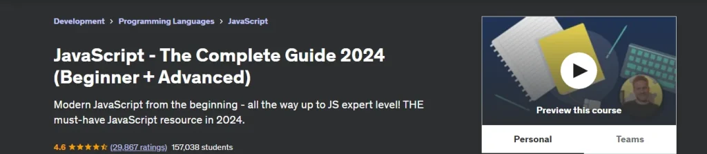 5. JavaScript - The Complete Guide 2023 (Beginner + Advanced) by Maximilian Schwarzmüller (Udemy)